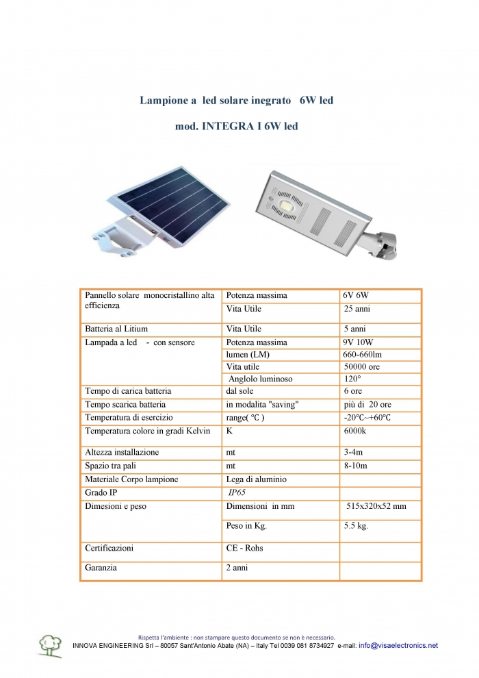 Pannello monocristallino 9V 10W - Integrato con Led 6W completo di sensore crepuscolare e di prossimità - Lm 620/660 - Colore 6000-6500K - Incluso staffe